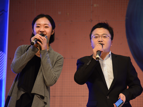 值得一提的是,14级辅导员陈琳琳和16级辅导员莫小俊共同在台上为观众献歌一曲,充分地展现了两人的个人魅力。游戏环节,观众热情参与,同时也展现出他们不为人知却令人深刻的唱歌技术。