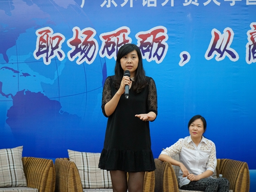 来到现场分享的七名员工分别是来自公务员行业的谭川川,批发与零售业麦德龙集团的韦涛和独立公关公司罗德集团的刘昀,从事服装行业的王晓和教育行业的肖佩欣,以及友邦保险广东分公司业务经理陈文静和现任广州恒大淘宝足球俱乐部教练组翻译梁科。七位嘉宾以自身丰富体验和深刻感悟向在座逾百位同学道出金玉良言,让在座人士受益匪浅。