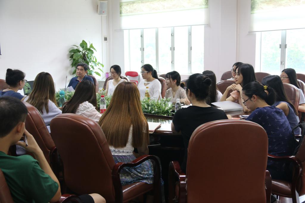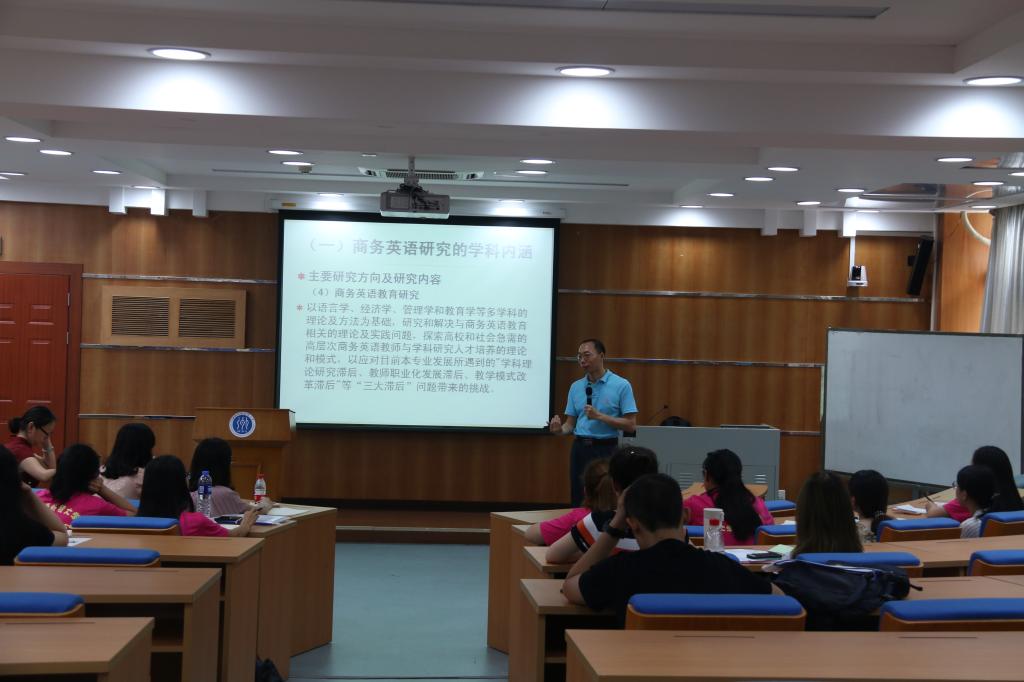 第二天是学术沙龙活动,公司张武保教授、陈开举教授、葛诗利教授、王伟强副教授、乐思伟老师分别就自身的教学经验、专业认知、科研项目、研究收获、求学历程等方面与学员们进行深入探讨与互动,让学员们更进一步了解商务英语的专业发展及研究前景。