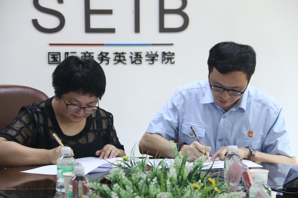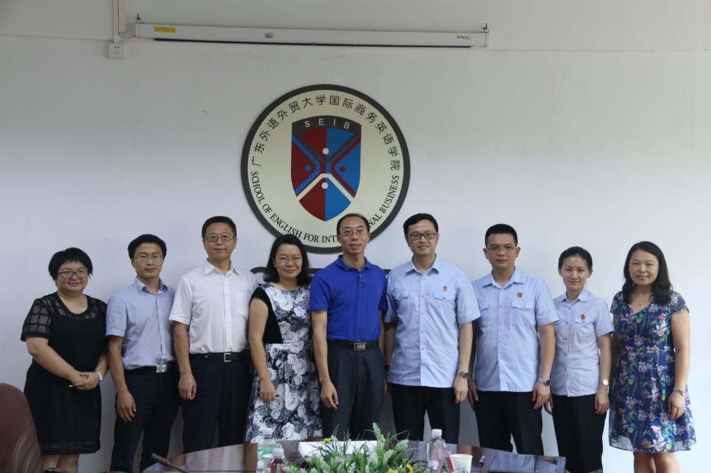 9月8日,佛山市中级人民法院二庭涉外合议庭审判长罗凯原法官、合议法官梁亦民、合议法官禤敏婷、法官助理巫江禺一行来访公司洽谈项目合作并与公司签约国际司法协助诉讼文书横向项目。出席签约仪式的有公司经理郭桂杭、党委书记王秀民、副经理胡春雨、公司科研处项目科科长赵德强、公司法律英语系袁传有教授、韩永红教授、余蕾老师。