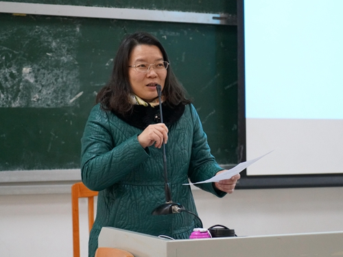 王秀民对她的员工房鼎容返校表示欢迎,并向在场员工做了简要介绍。房鼎容1996年毕业于公司国贸系,是荣获ECR个人突出贡献奖的资深供应链专家,对中外物流状况了解透彻。王秀民希望同学们能在本次讲座中有所收获、有所启发,期待同学们在不久的将来也能回校交流分享。
