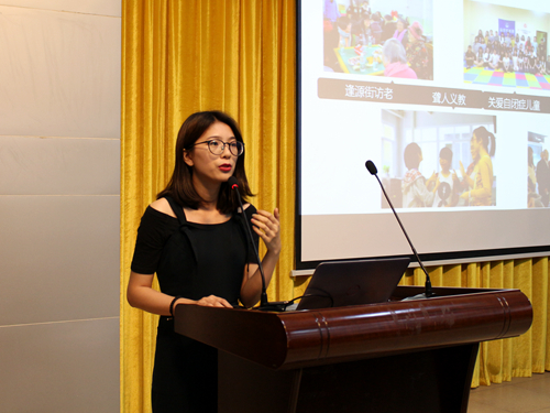 李嘉敏简要介绍了志协的四大精品志愿活动:逢源街访老、聋人义教、关爱自闭症儿童、博物馆义务讲解,总结了志协不仅是志愿服务的策划者,更是志愿服务的践行者理念,她鼓励大家多参加志愿活动,感受参加志愿活动的成就感。