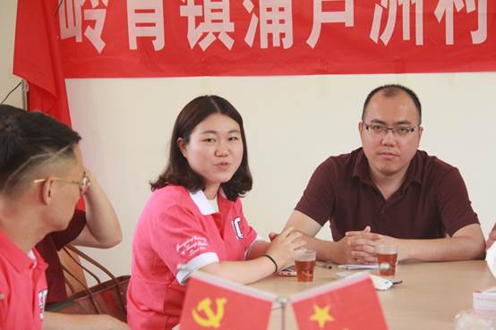 陈娓一行及员工党员首先在蒲芦洲村村委会议室与蒲芦洲村相关村干部进行了座谈。在听取了村干部对近年来蒲芦洲村贫困人数、经济作物、村民收入的介绍后,扶贫工作队陈静表示,在国家精准扶贫政策指引下,公司扶贫工作采取动态跟踪、统一管理、精准到户的工作方法取得了显著的成效,扶贫工作是实现中华民族伟大复兴的重要方面,党员干部尤其要冲在第一线,也希望各位毕业生党员在未来工作中能为实现中华民族伟大复兴贡献自己力量。陈娓表示,我们现在提倡讲好中国故事,这个故事也包括中国共产党有能力有力量带领中国人民脱离贫困。公司在蒲芦洲村的扶贫工作是持续的,从新村委会办公楼的建立到村民做到“八有”,这些持续的过程正是党员们用行动讲出的中国故事,员工党员要对国家有自信,要对共产党有自信,要对我党的政策有自信,更要对中国道路有自信。