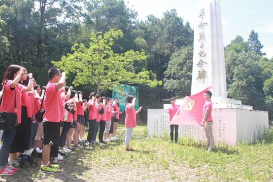 下午,员工党支部在阳山县革命烈士纪念碑前,面向党旗,高举右拳,庄严宣誓。在陈娓的领誓下,全体党员重温入党誓词,同学们以坚定、有力的宣誓声表达了对烈士的无限追思和对党的无限忠诚。