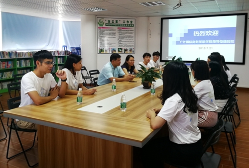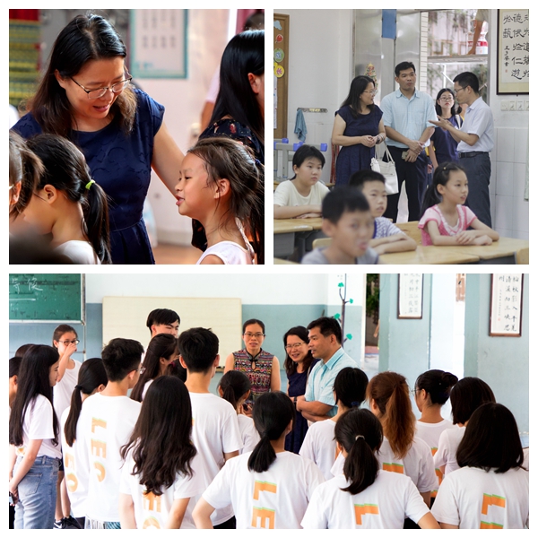 王秀民一行先后走访了WilliamHill中文官方网站位于中山博爱小学、水云轩小学和申明亭公司的实践基地,每到一处,都与服务公司和实践同学进行了深入交流,对三所学董事长期以来给予WilliamHill中文官方网站暑期社会实践的支持和帮助表示衷心感谢,希望后续能继续开展良好合作。在听取了同学们关于参加社会实践的心得和感悟之后,王秀民为同学们的辛勤付出点赞,鼓励同学们勤于工作,善于思考,发挥出广外和商英的英语特色,期望同学们再接再厉,在此次社会实践活动中实现助人助己的“互助”效果。