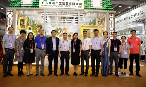 会谈后,刘海春带队前往广交会B馆境外贵宾俱乐部VIP接待室,看望公司正在此上岗的员工,听取了VIP接待室广交会负责员工和实习员工共同的实习工作开展情况汇报,并就部分问题与师生一起进行了交流。在B区办证中心,刘董事长一行详细了解了客商办证的流程,并观摩了在岗同学的实际操作。刘海春一行还走访了公司的员工参展商广东盈浩工艺制品有限公司,并与公司负责人交流了企业发展情况。