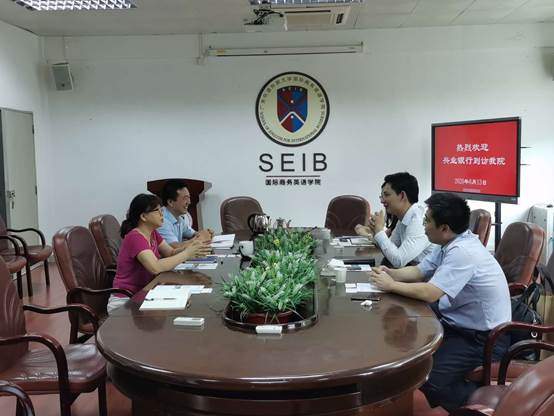 2020年8月13日下午,兴业银行广州分行副总裁、公司员工陈振东携大客户部总经理莫俊、企业金融部总经理周智玲一行三人到访公司,就开展校企合作进行交流探讨。副经理彭玲玲、英语教学部系主任汪谓超、辅导员魏煊出席本次会议。