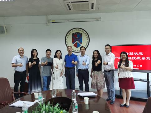 2020年9月17日上午,广外天河员工会一行五人在副会长唐玉涛(90级日语)、赵震峰(01级商英)的带领下到访公司,经理郭桂杭、书记王秀民、副书记陈静出席座谈会,双方就公司发展、院企可合作的方向进行了商讨。到访的员工还有秘书长黄崇本(06级营销),员工王征豫(99级商英)、张茵(15级商英),辅导员陈娓、魏煊一同参加会议。
