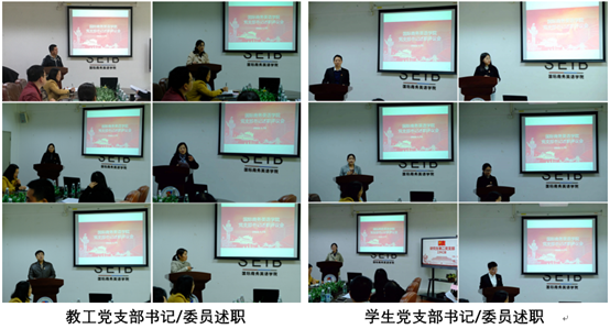 12名师生党支部书记围绕深入推进党史学习教育、开展政治理论学习和加强支部建设等方面,总结一年来支部建设的成绩,查找存在问题,提出下一步努力方向。支部书记们发挥各自所长,述职内容充实,充分展现了支部建设上的主动性和创造力,现场氛围良好。