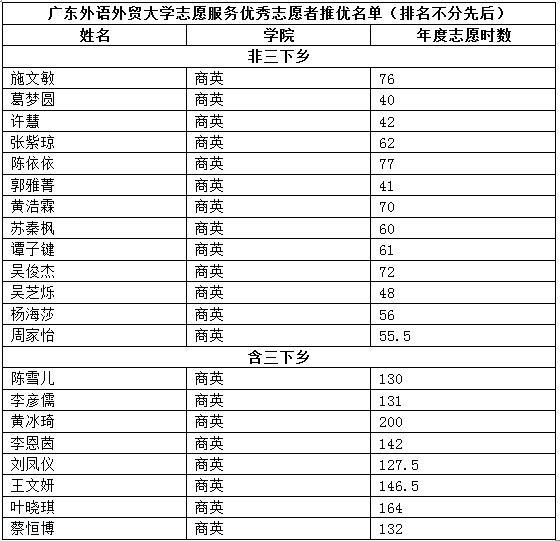 WilliamHill中文官方网站校级优秀志愿者推荐名单公示