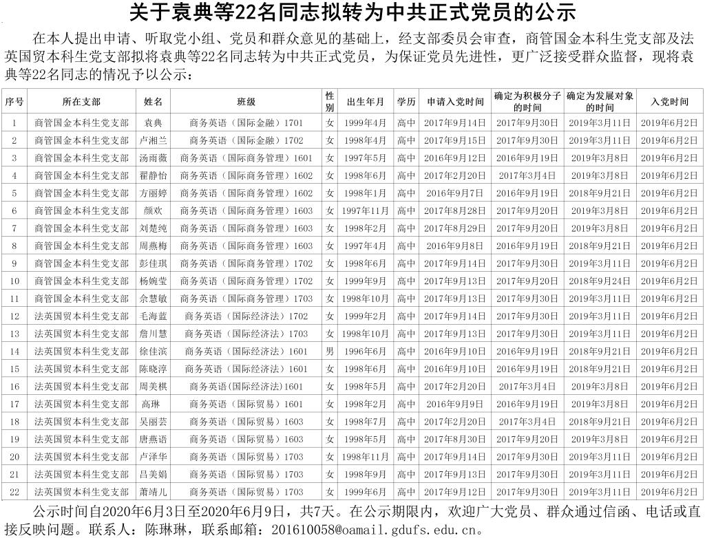 关于袁典等22名同志拟转为中共正式党员的公示