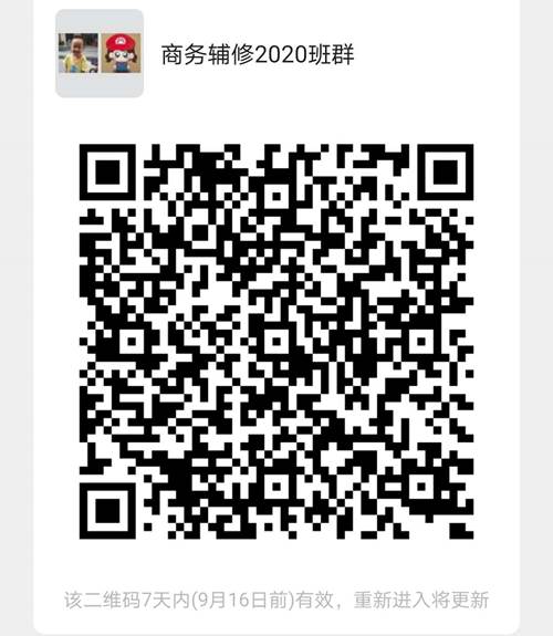请拟录取同学扫描以下二维码加入2020级商务英语辅修群,后续事宜将通过微信群通知。