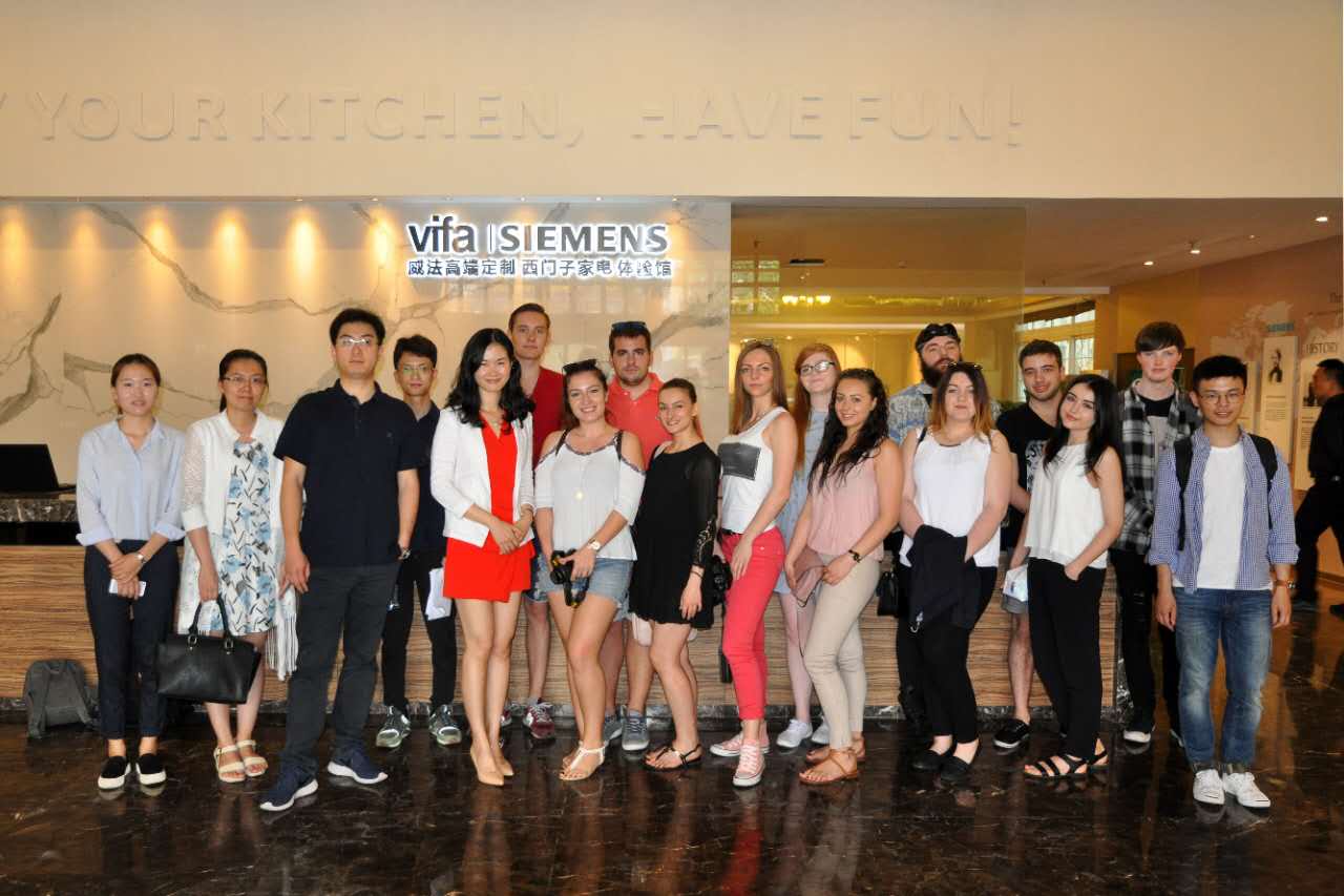 企业参观第一站,考文垂师生一行及部分广外员工前往威法橱柜公司番禺区旗舰店进行参观。威法橱柜的销售经理冯靖君(商英员工)为大家介绍威法橱柜的发展历史和业务范围,并带领大家参观了威法的橱柜展示区,考文垂员工对威法橱柜的产品和市场非常感兴趣并积极与冯经理交流探讨。参观结束,大家对威法公司的产品种类、市场战略都有了初步的了解,并表示收获颇丰。